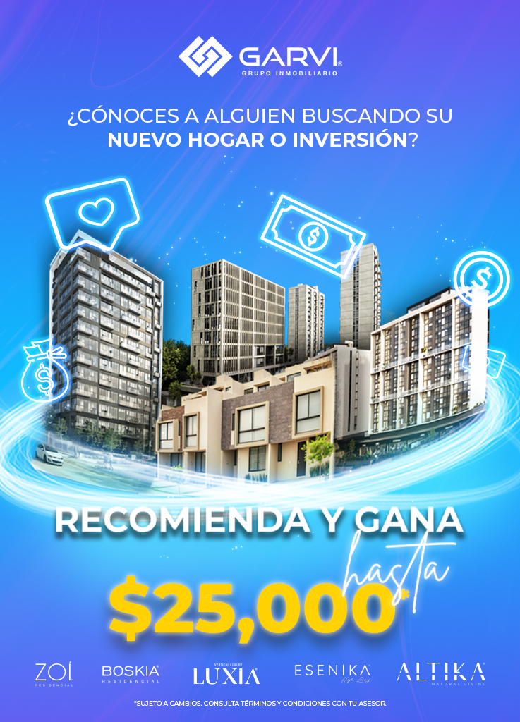Para participar en el programa RECOMIENDA GARVI debes visitar cualquiera de nuestros desarrollos y enviar tus datos y los datos de tu recomendado en el siguiente formulario: